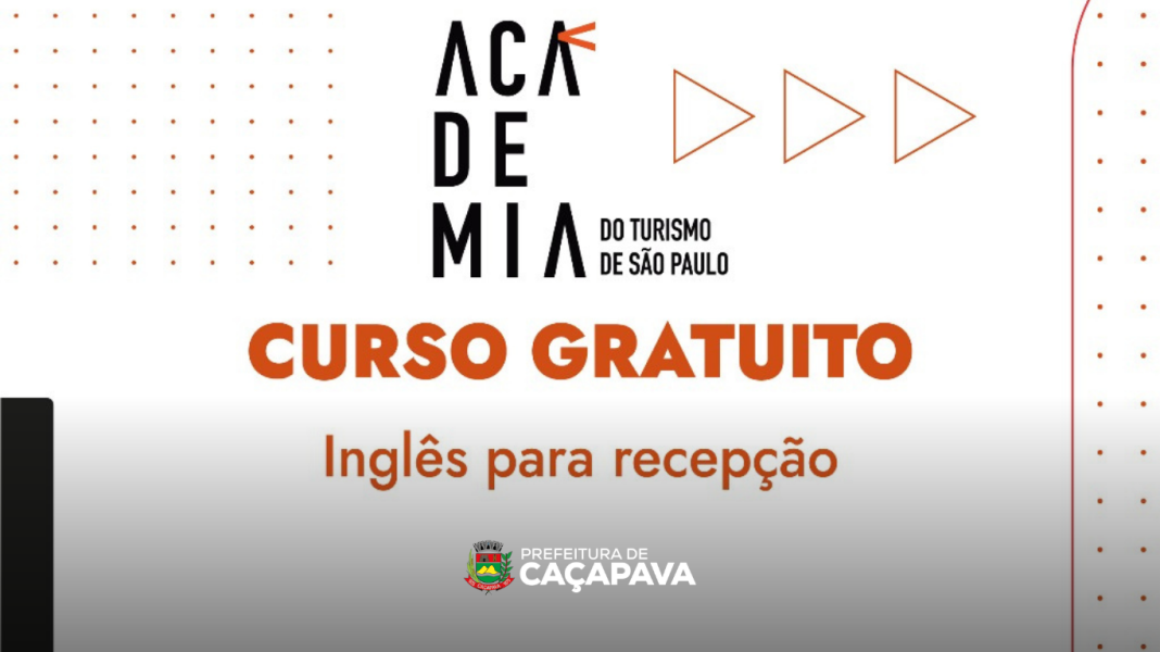 O Município de Caçapava recebe curso gratiuto de Inglês para Recepção, que irá acontecer dos dias 14/10 a 28/10 das 18h às 22h, no Espaço de Educação e Inovação Ruy Barbosa – R. Marquês de Herval, 1 – Centro.