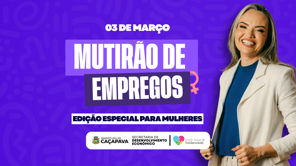 A Prefeitura de Caçapava, por meio da Secretaria de Desenvolvimento Econômico, com apoio do Fundo Social de Solidariedade, realiza no dia 3 de março um Mutirão de Empregos destinado exclusivamente à mulheres. A ação tem como objetivo ampliar o acesso ao mercado de trabalho, promovendo a conexão direta entre candidatas e vagas disponíveis no município.