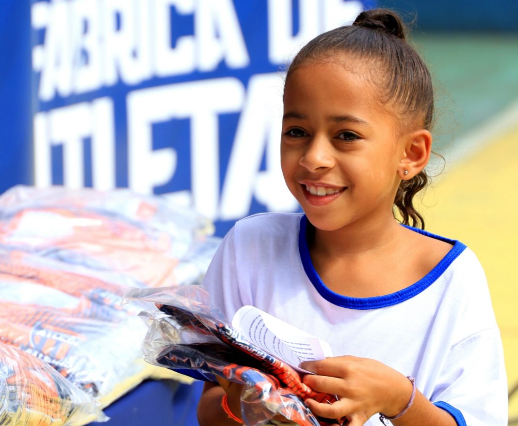 Na quarta-feira (25 de fevereiro), os olhares de centenas de crianças e adolescentes atendidas pelo projeto em São José dos Campos (SP), se voltaram para um momento especial: a entrega oficial dos uniformes do projeto Fábrica de Atletas. Os alunos receberam gratuitamente o kit completo com camiseta e shorts para a prática esportiva. O Fábrica de Atletas é um projeto apoiado pelo Instituto Motiva, na área de atuação da RioSP, empresa da Motiva.